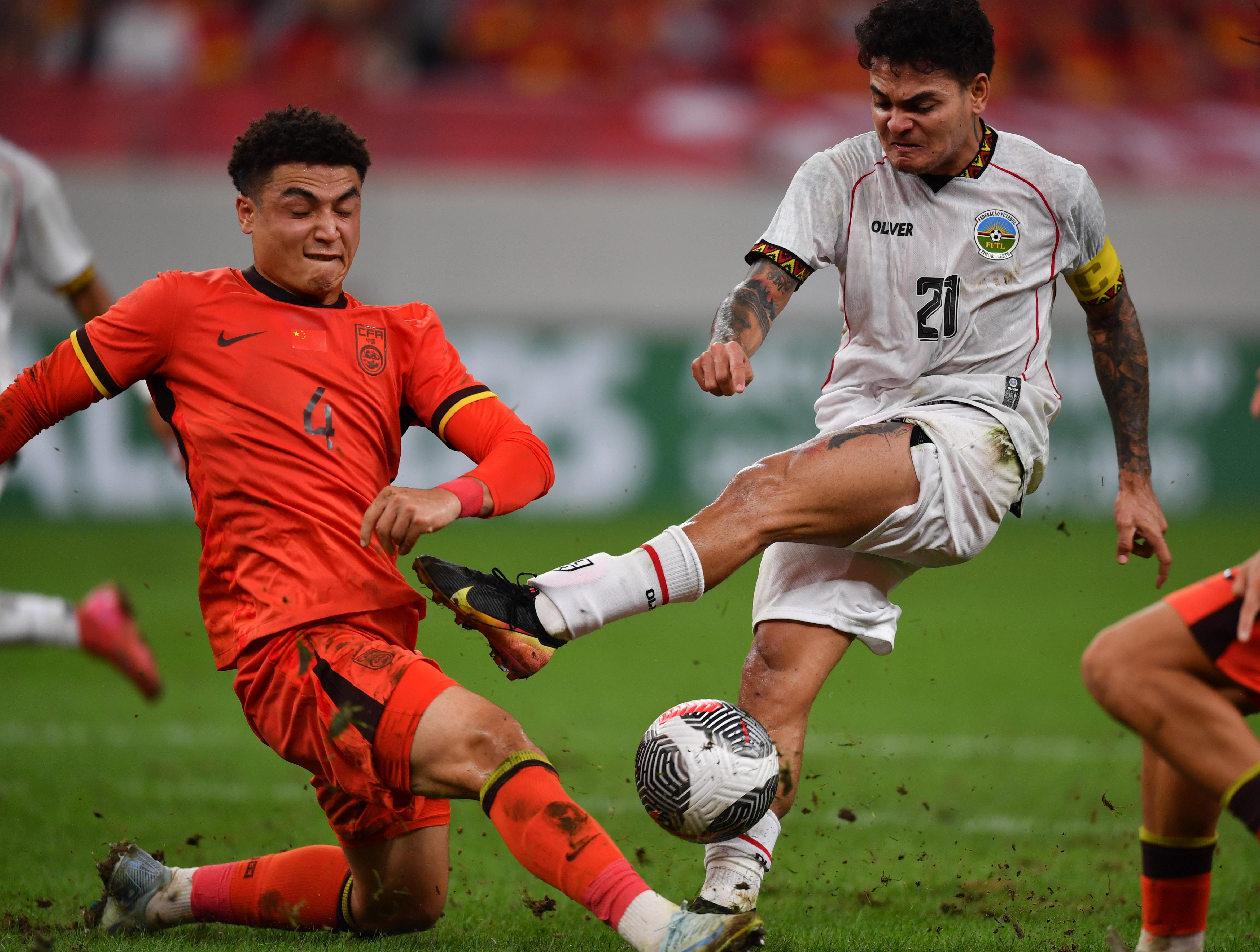 ↑中国队球员吾米提江·玉苏普(左)。新华社记者 张博文 摄