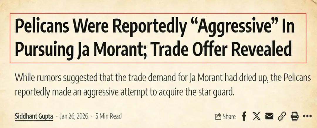 作为过去几年西部的一支强队,灰熊队本赛季的表现有些令人失望。赛程已过半,他们目前以18胜25负排名西部第11位。在战绩持续低迷的背景下,队内明星控卫莫兰特也多次卷入交易流言当中,包括热火、森林狼在内的多支球队均表达了对他的兴趣,不过多次谈判,却都没有任何实质性进展。然而,根据NBA记者Brandon “Scoop B” Robinson报道,新奥尔良鹈鹕近期...